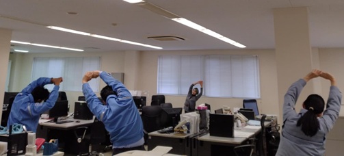 本年は「心・技・体をバランスよく高める」ことに注力しつつ、「心身の健康と技術力・人間力の向上を両立できる職場環境づくり」を目指して、運動機会の増進を目的とした体操や、能 力の発揮・不調予防を目的としたマインドフルネスに取り組んでいます。